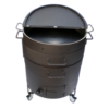 Der Lieferumfang schließt den Maroniofen komplett mit Falt-Deckel, Warmhaltepfanne inkl. Hitzeschutzblech aus Edelstahl, 2 Röstpfannen (Laden), Feuerkorb, Feuerrost aus stabilem Gußeisen, seitliches Haltersystem und Rädern ein.Farbe: schwarz | Arbeitshöhe: 92 cm | Pfanne: 80 cm Durchmesser / Henkelmaß 90 cm | Füllmenge der Laden: ca. 10 kg per Lade