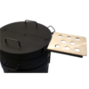 * Neben dem bekannten Ladensystem für das Garen des Maroni- bzw. Kartoffelpuffernachschubs haben wir den Deckel klappbar gestaltet. Damit geht bei der Maroniausgabe nicht zuviel Hitze verloren, da nur der vordere Teil angehoben wird.* Lüftungslöcher im oberen Teil sorgen für eine verbesserte Lüftungsregulierung und vermeiden zusätzlich ev. Hitzestaus. Die obere Pfanne verfügt über eine Wölbung in der Mitte auf welcher das separate Hitzeschutzblech aus Edelstahl aufgesetzt wird. *